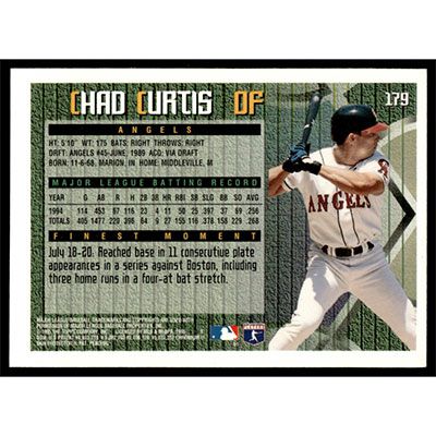 This is a 1995 Finest Chad Curtis baseball card. The card is #179 and pictures show condition.