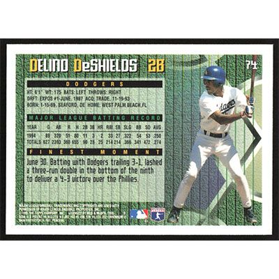 This is a 1995 Finest Delino DeShields baseball card. The card is #74 and pictures show condition.