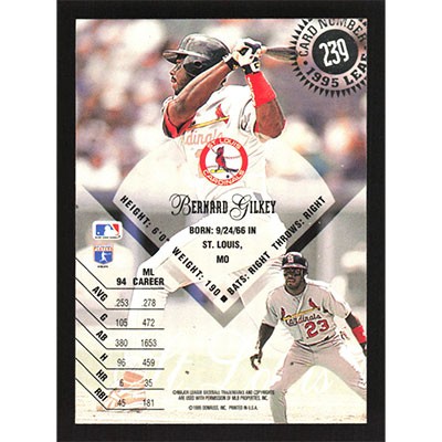 This is a 1995 Leaf Bernard Gilkey baseball card. The card is #239 and pictures show condition.