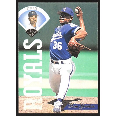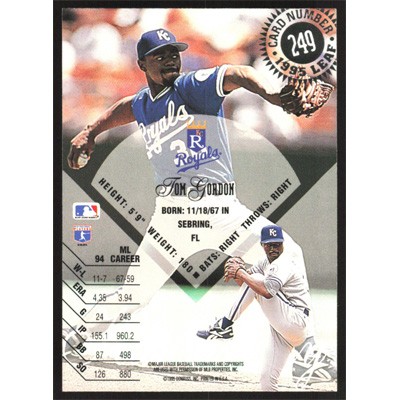 This is a 1995 Leaf Tom Gordon baseball card. The card is #249 and pictures show condition.