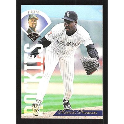 This is a 1995 Leaf Marvin Freeman baseball card. The card is #259 and pictures show condition.