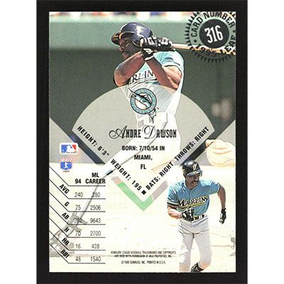 This is a 1995 Leaf Andre Dawson baseball card. The card is #316 and pictures show condition.