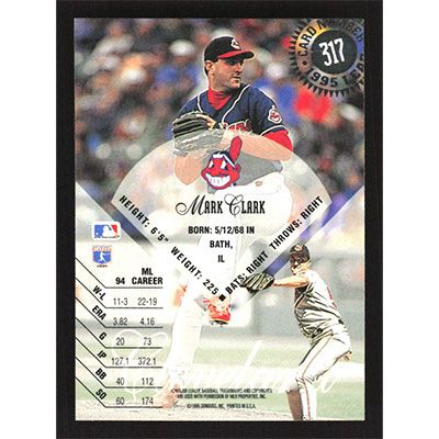 This is a 1995 Leaf Mark Clark baseball card. The card is #317 and pictures show condition.
