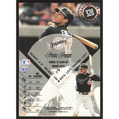 This is a 1995 Leaf Steve Finley baseball card. The card is #320 and pictures show condition.