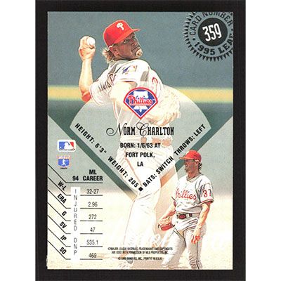 This is a 1995 Leaf Norm Charlton baseball card. The card is #359 and pictures show condition.