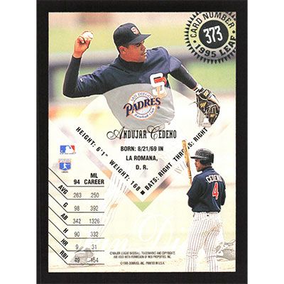 This is a 1995 Leaf Andujar Cedeno baseball card. The card is #373 and pictures show condition.