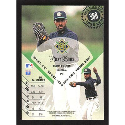This is a 1995 Leaf Ricky Bones baseball card. The card is #388 and pictures show condition.