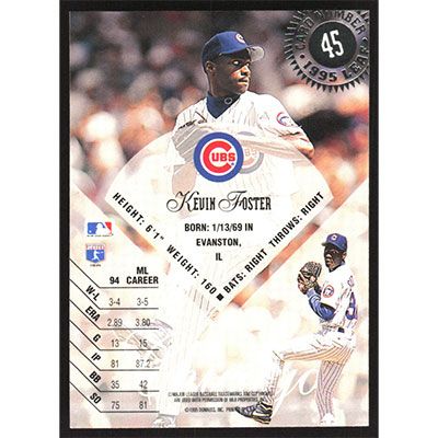 This is a 1995 Leaf Kevin Foster baseball card. The card is #45 and pictures show condition.