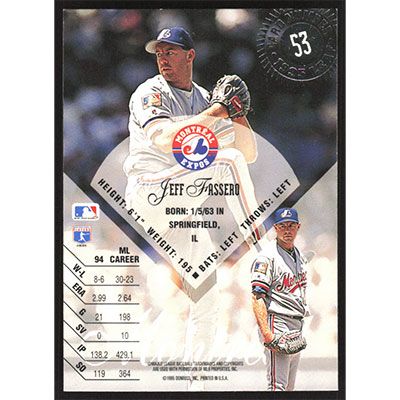 This is a 1995 Leaf Jeff Fassero baseball card. The card is #53 and pictures show condition.