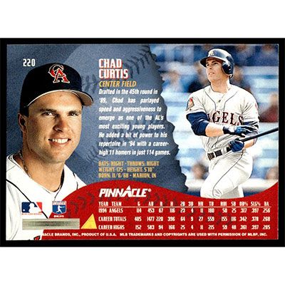 This is a 1995 Pinnacle Chad Curtis baseball card. The card is #220 and pictures show condition.