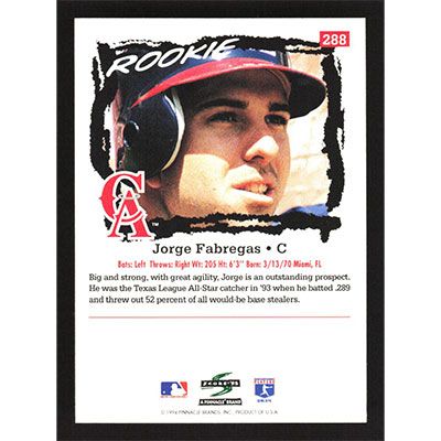 This is a 1995 Score Jorge Fabregas baseball card. The card is #288 and pictures show condition.