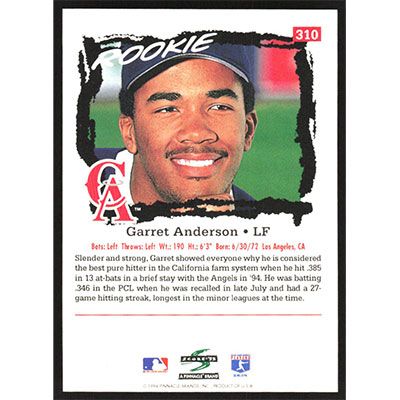 This is a 1995 Score Garret Anderson baseball card. The card is #310 and pictures show condition.