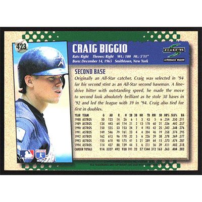 This is a 1995 Score Craig Biggio baseball card. The card is #423 and pictures show condition.