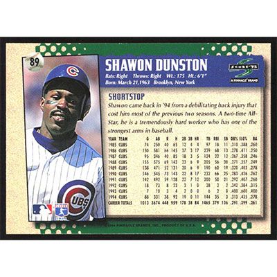 This is a 1995 Score Shawon Dunston baseball card. The card is #89 and pictures show condition.