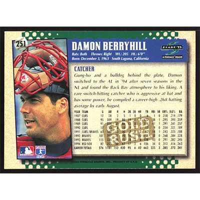 This is a 1995 Score Gold Rush Damon Berryhill baseball card. The card is #251 and pictures show condition.