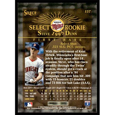 This is a 1995 Select Steve Dunn baseball card. The card is #157 and pictures show condition.