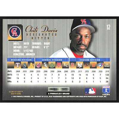 This is a 1995 Select Certified Chili Davis baseball card. The card is #12 and pictures show condition.