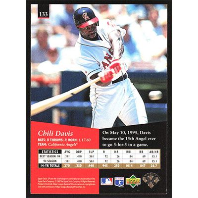 This is a 1995 SP Chili Davis baseball card. The card is #133 and pictures show condition.