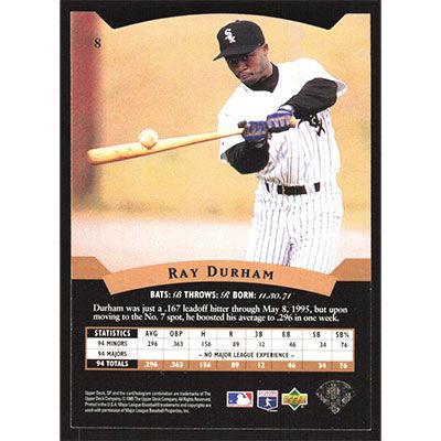 This is a 1995 SP Ray Durham Foil baseball card. The card is #8 and pictures show condition.