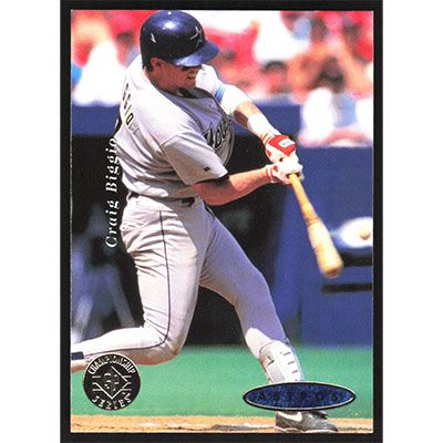 This is a 1995 SP Championship Craig Biggio baseball card. The card is #52 and pictures show condition.
