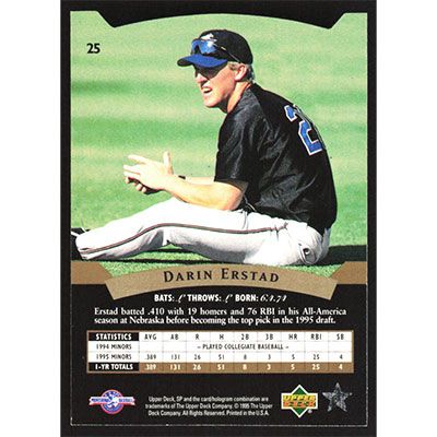 This is a 1995 SP Top Prospects Darin Erstad baseball card. The card is #25 and pictures show condition.