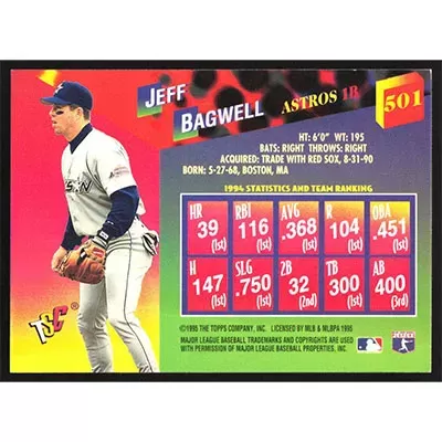 This is a 1995 Stadium Club Jeff Bagwell Extreme Corps baseball card. The card is #501 and pictures show condition.