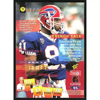 This is a 1995 Stadium Club Bucky Brooks football card. The card is #95 and pictures show condition.