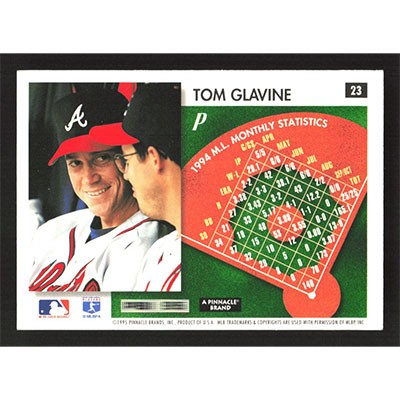 This is a 1995 Summit Tom Glavine baseball card. The card is #23 and pictures show condition.