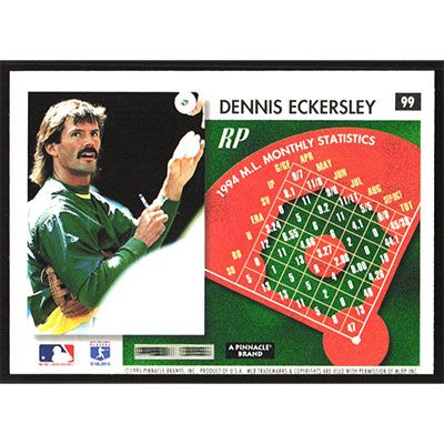 This is a 1995 Summit Dennis Eckersley baseball card. The card is #99 and pictures show condition.