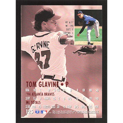 This is a 1995 Ultra Tom Glavine baseball card. The card is #125 and pictures show condition.