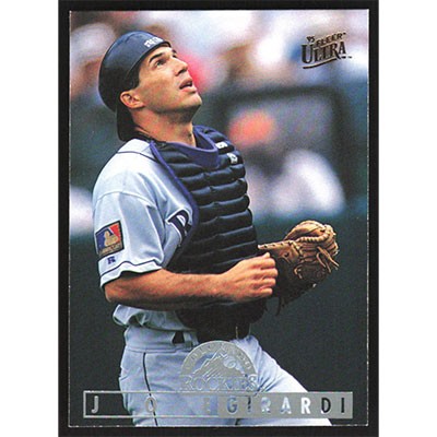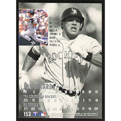 This is a 1995 Ultra Joe Girardi baseball card. The card is #153 and pictures show condition.