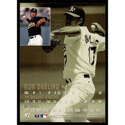 This is a 1995 Ultra Ron Darling baseball card. The card is #92 and pictures show condition.