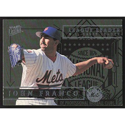 This is a 1995 Ultra League Leaders John Franco baseball card. The card is #10 and pictures show condition.