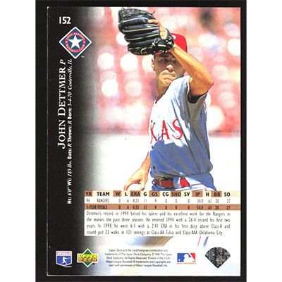 This is a 1995 Upper Deck Electric Diamond John Dettmer baseball card. The card is #152 and pictures show condition.