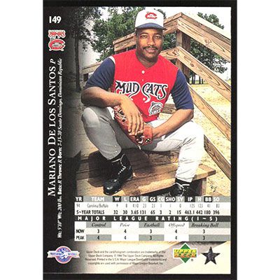 This is a 1995 Upper Deck Minors Mariano De los Santos baseball card. The card is #149 and pictures show condition.