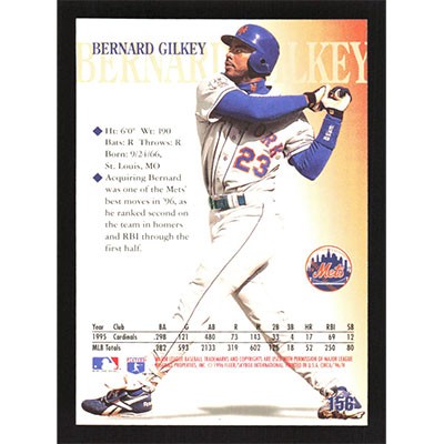 This is a 1996 Circa Bernard Gilkey baseball card. The card is #156 and pictures show condition.