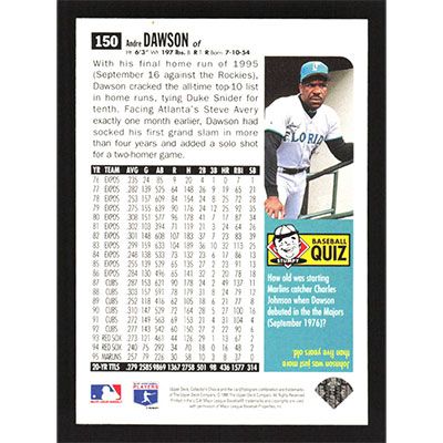 This is a 1996 Collector's Choice Andre Dawson baseball card. The card is #150 and pictures show condition.
