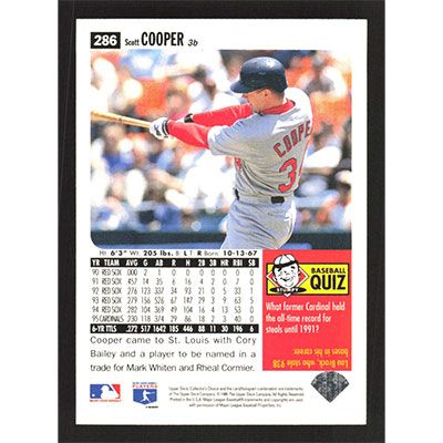 This is a 1996 Collector's Choice Scott Cooper baseball card. The card is #286 and pictures show condition.