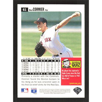This is a 1996 Collector's Choice Rheal Cormier baseball card. The card is #61 and pictures show condition.
