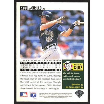 This is a 1996 Collector's Choice Silver Signature Jeff Cirillo baseball card. The card is #188 and pictures show condition.