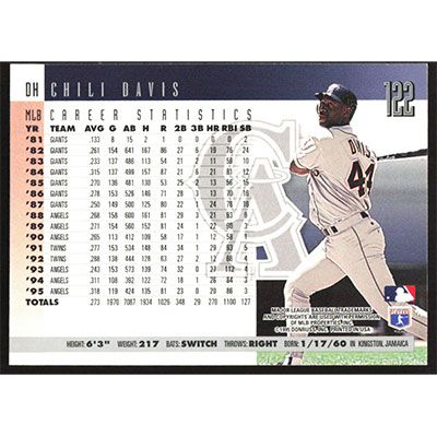 This is a 1996 Donruss Chili Davis baseball card. The card is #122 and pictures show condition.