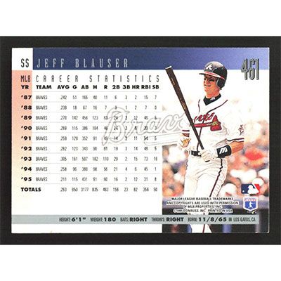 This is a 1996 Donruss Jeff Blauser baseball card. The card is #461 and pictures show condition.