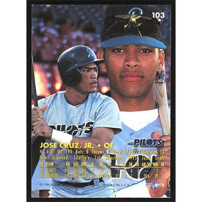 This is a 1996 Excel Jose Cruz Jr. baseball card. The card is #103 and pictures show condition.