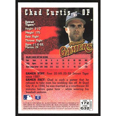 This is a 1996 Finest Chad Curtis baseball card. The card is #172 and pictures show condition.