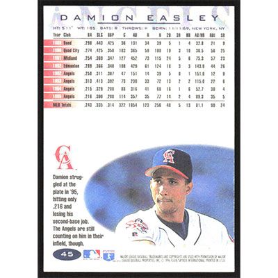 This is a 1996 Fleer Damion Easley baseball card. The card is #45 and pictures show condition.