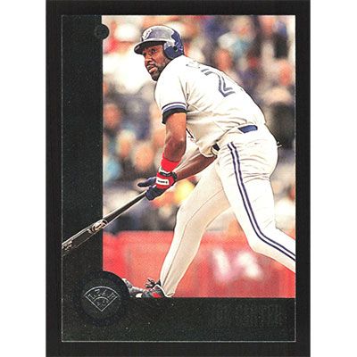 This is a 1996 Leaf Joe Carter baseball card. The card is #118 and pictures show condition.