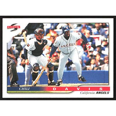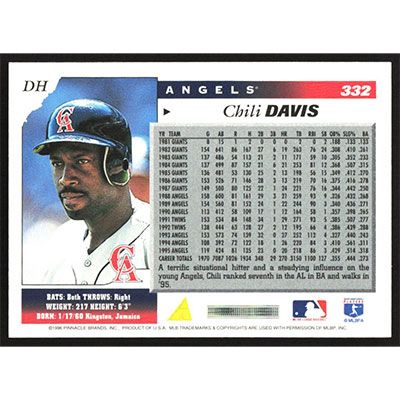 This is a 1996 Score Chili Davis baseball card. The card is #332 and pictures show condition.