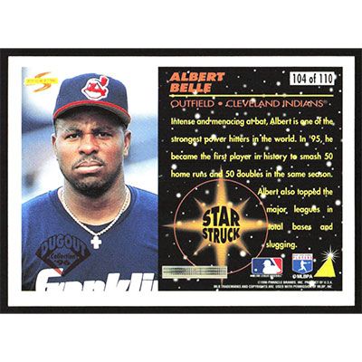 This is a 1996 Score Dugout Collection Albert Belle Star Struck baseball card. The card is #104 and pictures show condition.