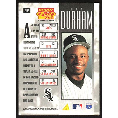 This is a 1996 Sportflix Ray Durham baseball card. The card is #49 and pictures show condition.