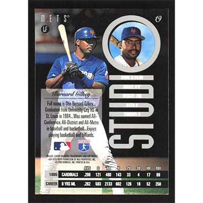 This is a 1996 Studio Bernard Gilkey baseball card. The card is #19 and pictures show condition.